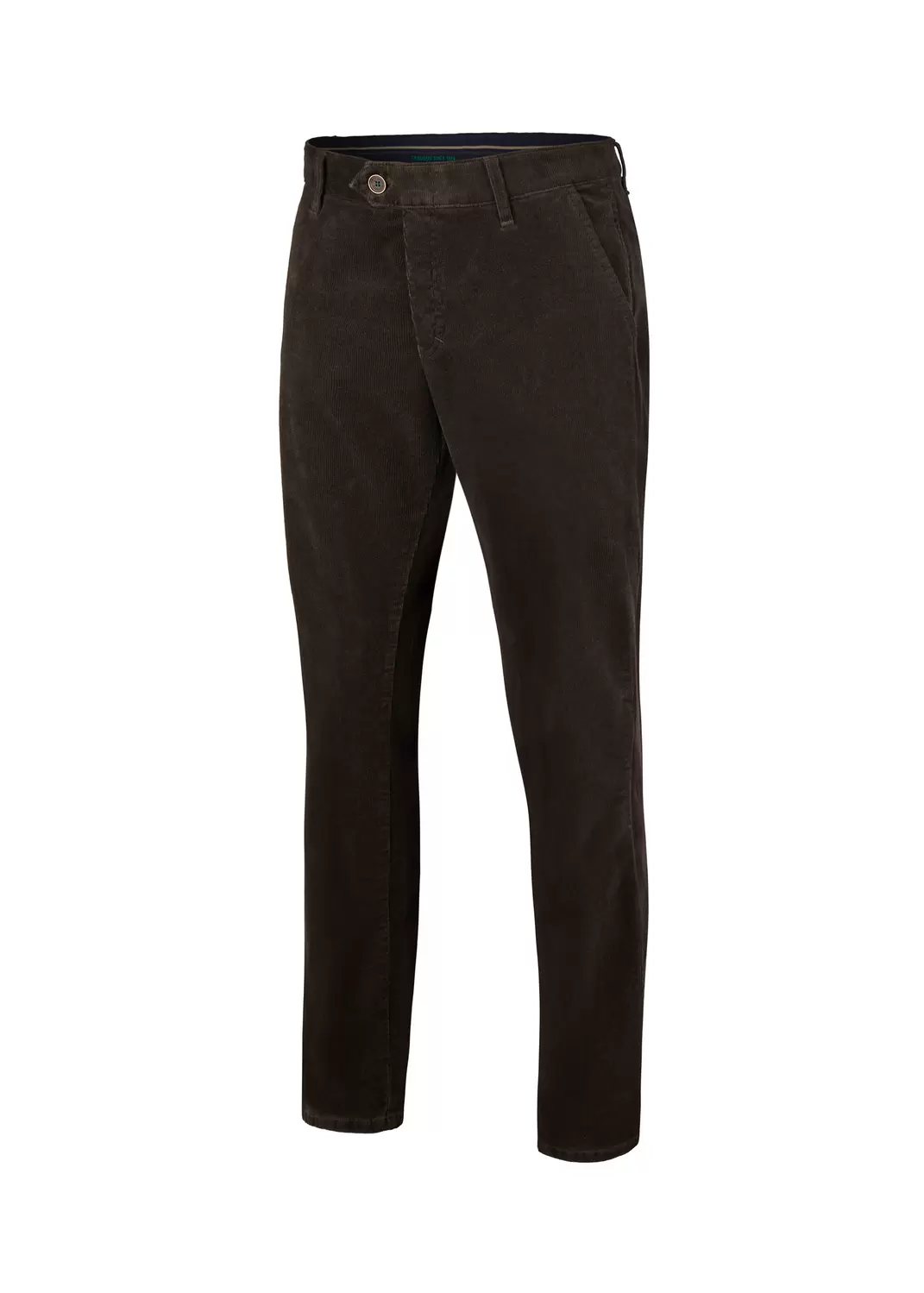 Bequeme Flat Front-Hose mit elastischem Komfortbund und Hemdstopper. Dazu die praktische Bundverlängerung mit Knopf und Haken. Gerfertigt aus einem Feincord mit High Stretch mit weichem Griff in casualiger Optik. Gewicht: 505 g/lfm Das Modell bietet eine normale Leibhöhe und wegen der schmaleren Fußweite einen schlankeren Beinverlauf.