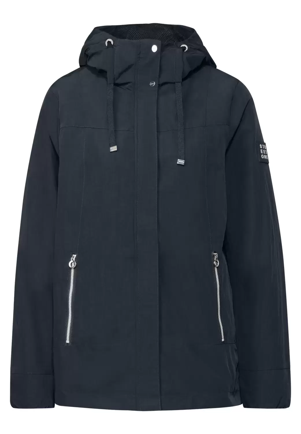 Der moderne Windbreaker von Street One für Damen ist die perfekte Jacke für die Übergangszeit. Mit Kapuze, elastischen Bündchen und seitlichen Reißverschlusstaschen schützt er dich vor Wind und Wetter – ideal für sportlich-lässige Looks. Jacke Kapuze mit Tunnelzug Seitliche Taschen mit Reißverschluss Elastische Bündchen Ideal für die Übergangszeit Material: Obermaterial: 60% Polyester, 40% Nylon; Futter: 100% Polyester