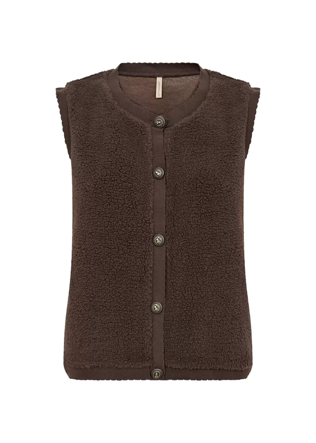 Die SC-ONYX 6 Weste ist aus 100 % recyceltem Polyester gefertigt. Sie hat einen Rundhalsausschnitt, einen Knopfverschluss vorne und eine strukturierte Oberfläche. Kombiniere sie mit Jeans und einem langärmeligen Oberteil für einen mehrschichtigen Look.