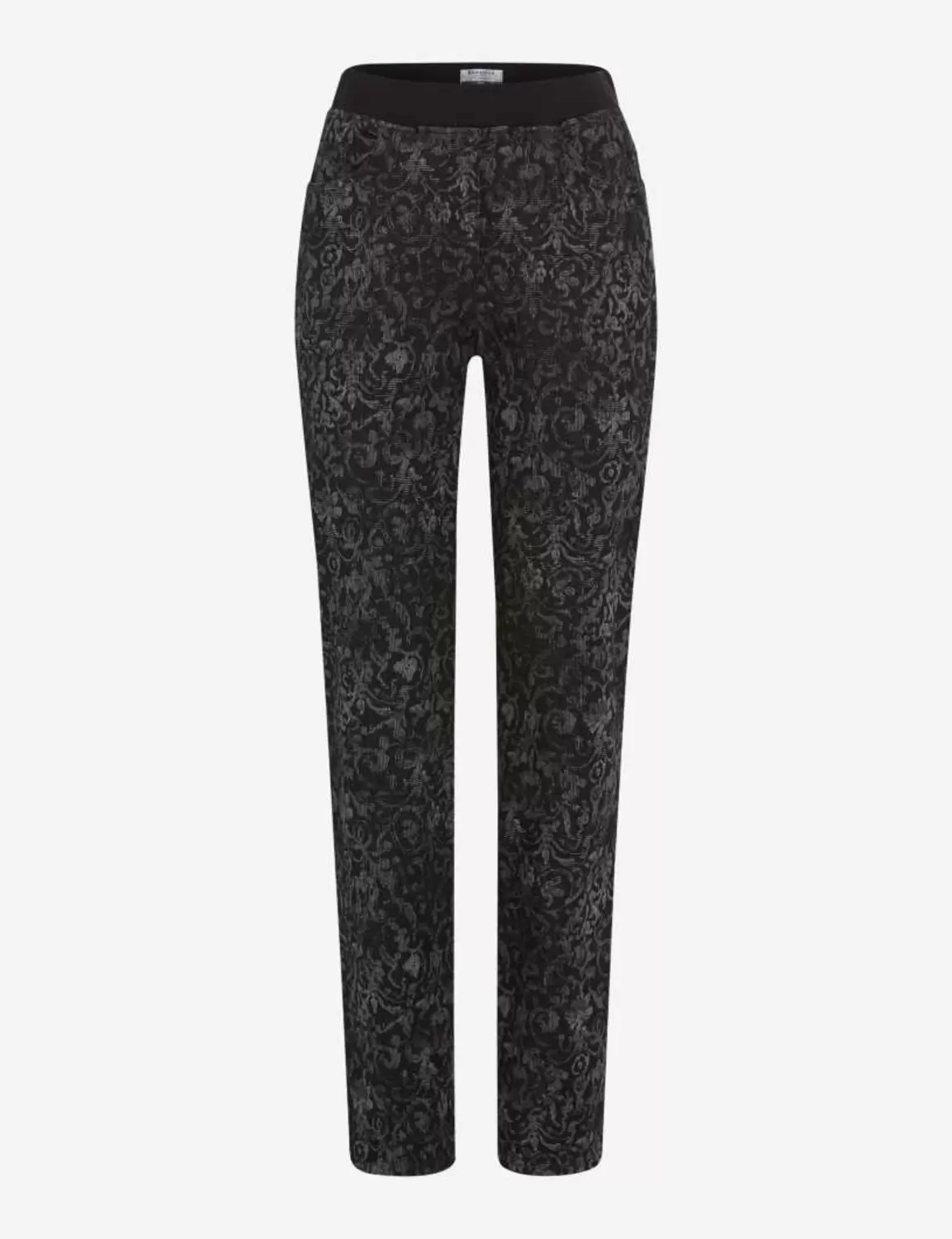 Stilvoll, bequem und mit besonderem Charme – die Schlupfhose im Style PAMINA verbindet modisches Feingefühl mit maximalem Tragekomfort. Die schmale Passform mit hoher Leibhöhe formt eine feminine Silhouette, während der elastische Bund das Anziehen besonders unkompliziert macht. Aufgesetzte Gesäßtaschen setzen dezente Akzent und der edle Ornament-Print verleiht der Hose eine elegante Note mit individuellem Charakter – perfekt für moderne Looks mit dem gewissen Etwas. Gefertigt aus elastischem Denim im Baumwollmix mit Polyester und Elasthan bietet die Jeanshose ein angenehmes Hautgefühl, zuverlässige Formstabilität und angenehme Bewegungsfreiheit. Der hochwertige Denim sorgt für einen authentischen Look mit weichem Griff, während Elasthan und Polyester für Flexibilität und Strapazierfähigkeit sorgen.